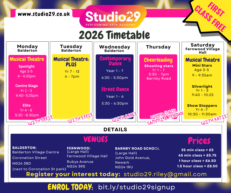 Our classes work in line with Nottinghamshire's school holiday calendar and on a half termly basis. Our current dates can be found on our "Parents/Carers" page or by clicking on the link below.